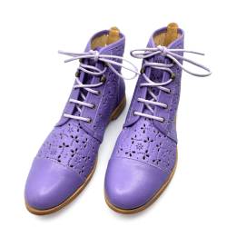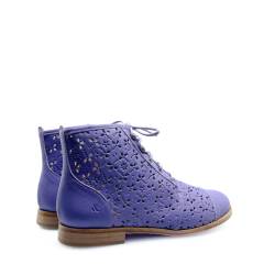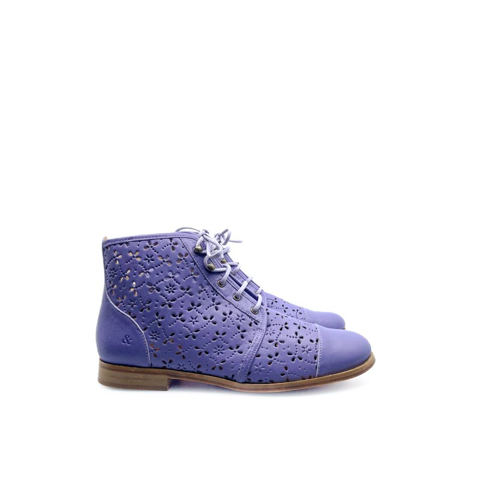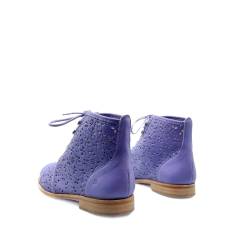 Aquí está de nuevo nuestro botín de cuero perforado, con un fantástico diseño de florecitas que hará resaltar cualquier conjunto. En un color lila de lo más actual.